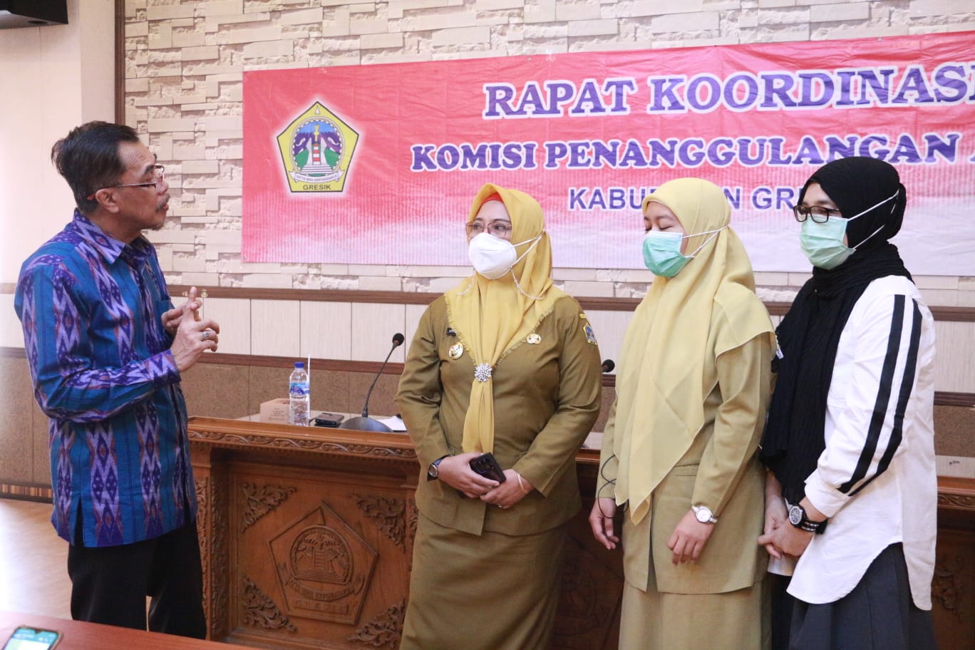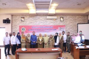 Hadir saat rakor, Wakil Bupati Gresik Aminatun Habibah, Sekretaris KPA Adi Yumanto, serta seluruh anggota KPA Kabupaten Gresik.(TLH/DOD).