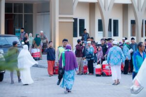 Setelah seremonial selesai, para jamaah haji dipersilahkan untuk pulang bersama para keluarga yang telah menunggu sejak dini hari tadi.