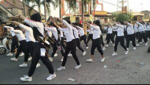 Semua peserta mengikuti Gerak Jalan sampai garis finis yang ada di lapangan Gelora Balongpanggang.
