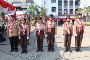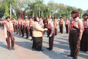 Gresik https://mediarestorasiindonesia.com 14 Agustus 2023 – Kwartir Cabang (Kwarcab) Gerakan Pramuka Kabupaten Gresik, menggelar apel besar dalam rangka memperingati Hari Pramuka ke-62 tahun 2023. Apel kali ini mengusung tema “Dengan Peringatan Hari Pramuka ke-62, Mari Kita Wujudkan SDM Yang Profesional dan Berwawasan Kebangsaan”.