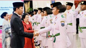 JAKARTA https://mediarestorasiindonesia.com Presiden Joko Widodo mengukuhkan 76 pelajar menjadi anggota Pasukan Pengibar Bendara Pusaka (Paskibraka) Tahun 2023. Presiden Jokowi bertindak selaku pembina upacara dalam pengukuhan yang digelar di Istana Negara, Jakarta, pada Selasa, 15 Agustus 2023.