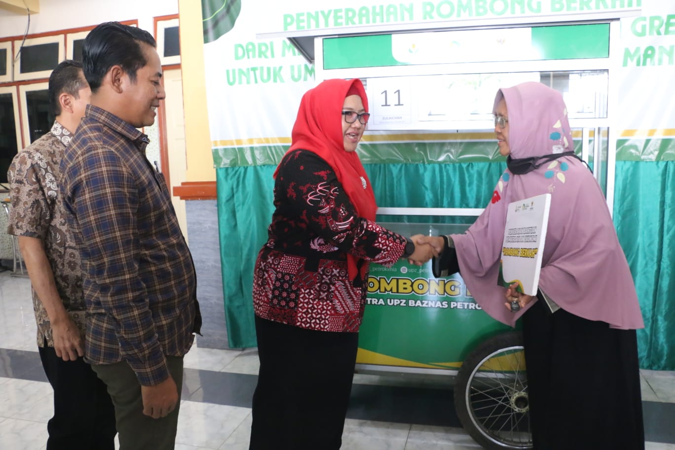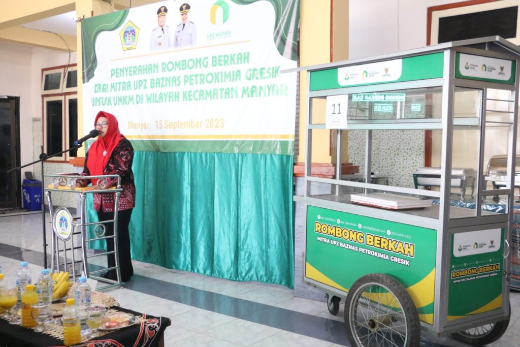 Gresik https://mediarestorasiindonesia.com 15 September 2023 – Wakil Bupati Gresik Aminatun Habibah menghadiri penyerahan rombong dari Unit Pengumpul Zakat (UPZ) Baznas PT Petrokimia Gresik, untuk pelaku UMKM di Kecamatan Manyar, Jumat (15/09). Total, terdapat 20 rombong, yang diberikan merata untuk Desa Manyarejo, Desa Manyarsidomukti, dan Desa Manyarsidorukun.