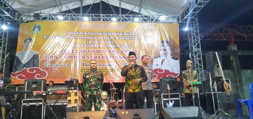 Masih Ziadatul Akmal, S.H., Ia juga Menambahkan,” Pada malam hari ini adalah malam penutup dari seluruh rangkaian kegiatan sedekah bumi dan haul yang telah kita mulai pada hari kamis dengan berdoa bersama yang kemudian di hari Jumat kita mengadakan tumpengan dan malam hari ini kita tutup dengan pagelaran wayang dan campursari serta penyanyi dari papan atas yakni Anjar Agustin dan Lala Widi,” ujar Kades Tumapel Ziadatul.