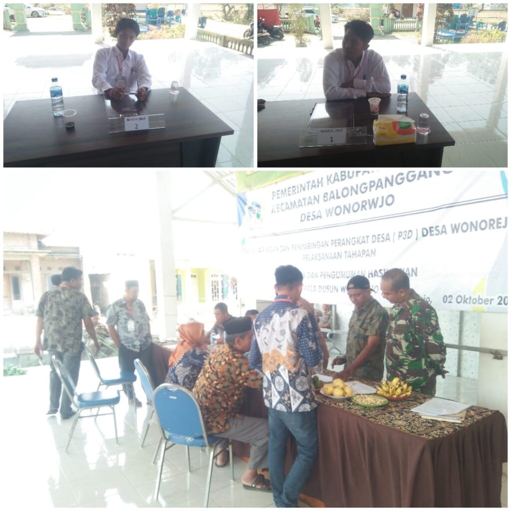 Ketua P3D Desa wonorejo H.Jamal mengatakan,” pada pagi hari ini Panitia P3D menyelengarakan ujian test tulis, Setelah melakukan tahapan verivikasi data selanjutnya kedua calong melasanakan test tulis,” Ungkapnya.