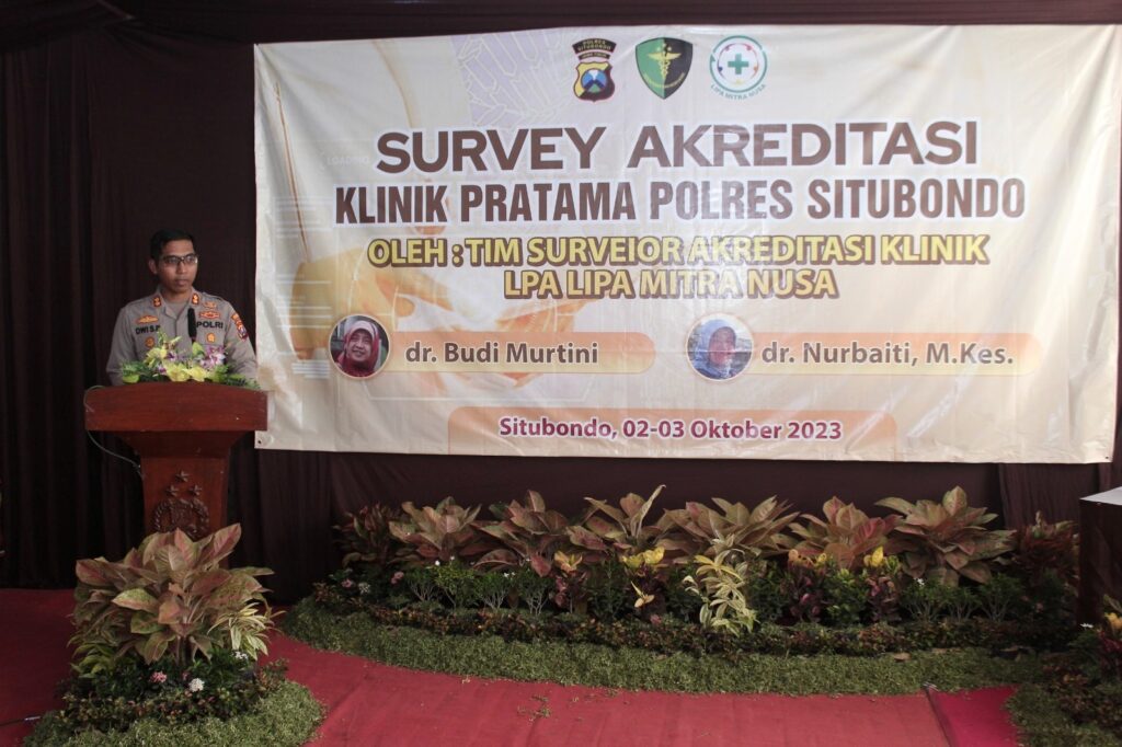 Sementara itu Kapolres Situbondo AKBP Dwi Sumrahadi Rahmanto menyampaikan ucapan selamat datang kepada Tim Surveyor dari LPA Lipa Mitra Nusa, dimana akreditasi ini memiliki tujuan untuk peningkatan kerja Klinik Pratama Polres Situbondo.