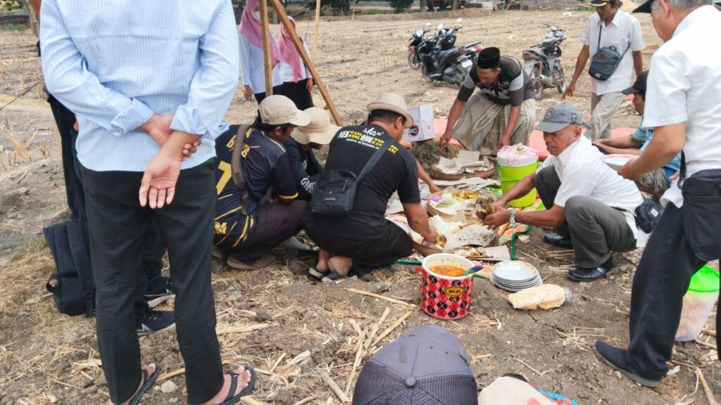 “Dalam Proses Ekskavasi di awali dengan Selamatan tumpengan untuk simbol.penghormatan pada leluhur dan juga guna supaya masyarakat Dusun Sambangan bisa guyup rukun dalam ikut serta berpastisipasi hadir,menunjukan bahwa masyarakat antusias meneriama kehadiran Tim BPK Trowulan Mojokerto dengan rasa senang dan kompak.