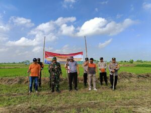 Gresik https://mediarestorasiindonesia.co.id Guna untuk terwujudnya ketahanan pangan, jajaran Koramil 0817/09 Balongpanggang bersama warga menyiapkan lahan pertanian untuk ditanami jagung bertempat di Desa Wahas Kecamatan Balongpanggang Kabupaten Gresik, Jumat (26/4/2024) pagi.