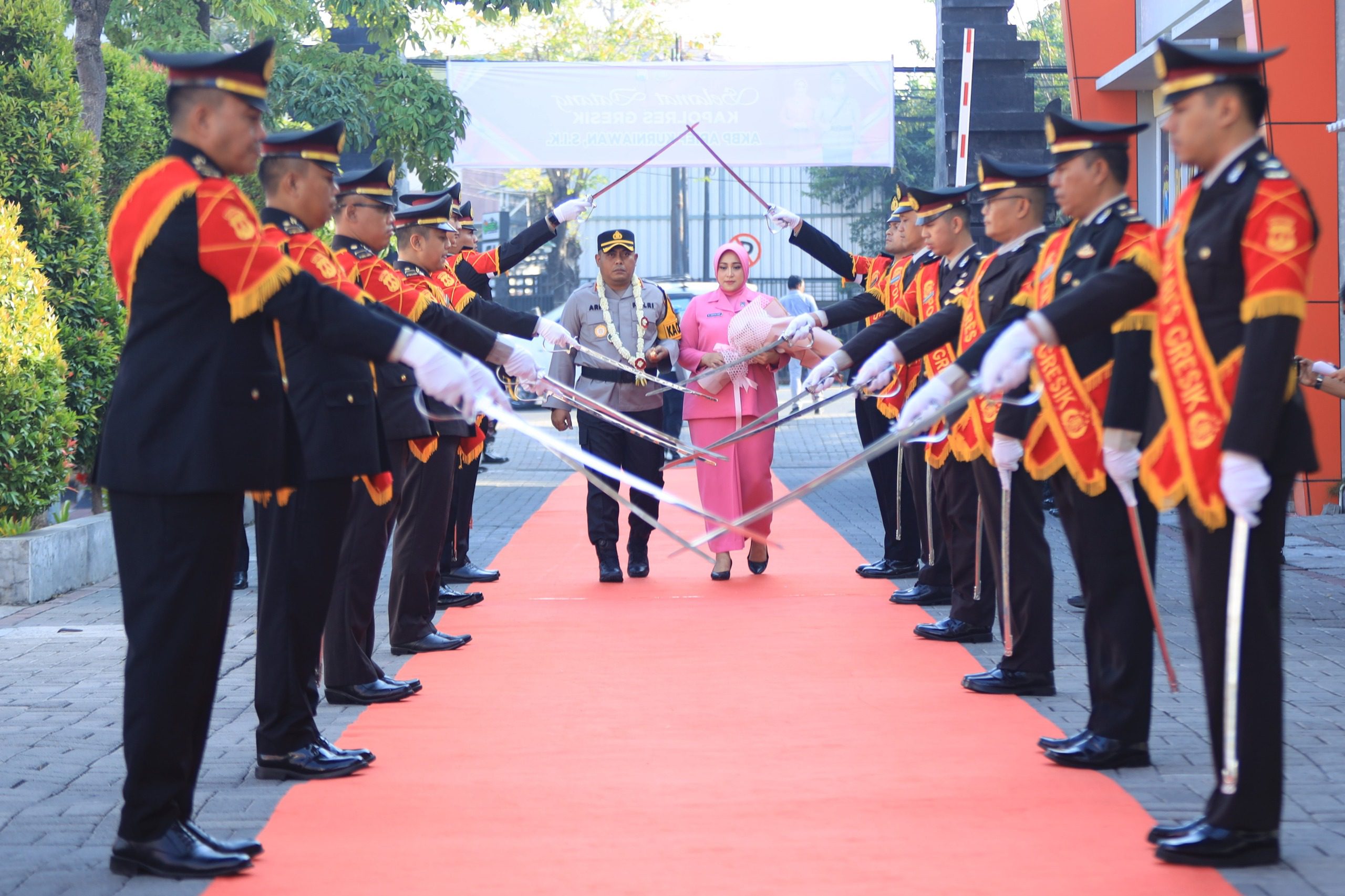 GRESIK https://mediarestorasiindonesia.co.id Dengan bergantinya kepemimpinan Polres Gresik yang ditandai dengan sertijab yang dilakukan di Mapolda Jawa Timur, kemarin. Hari ini dilanjutkan penyambutan Kapolres Gresik yang Baru AKBP Arief Kurniawan oleh Kapolres lama AKBP Adhitya Panji Anom ditandai dengan tradisi pedang pora Kapolres Arief Kurniawan dan AKBP Adhitya Panji Anom. Kamis (18-07-2024).