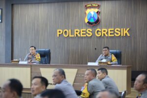 Kegiatan dilanjutkan Laporan kesatuan oleh AKBP Adhitya Panji Anom tentang situasi wilayah hukum Polres Gresik melingkupi permasalahan yang ada Kabupaten Gresik maupun internal Polres Gresik.