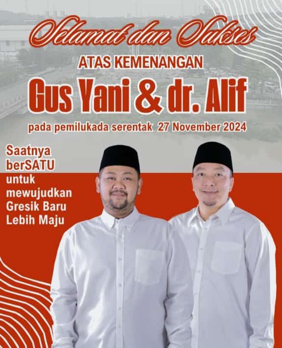 GRESIK https://mediarestorasiindonesia.co.id Pasangan Calon (Paslon) Fandi Akhmad Yani – dr Asluchul Alif (Yani-Alif) dipastikan keluar sebagai pemenang pada Pilkada 2024.