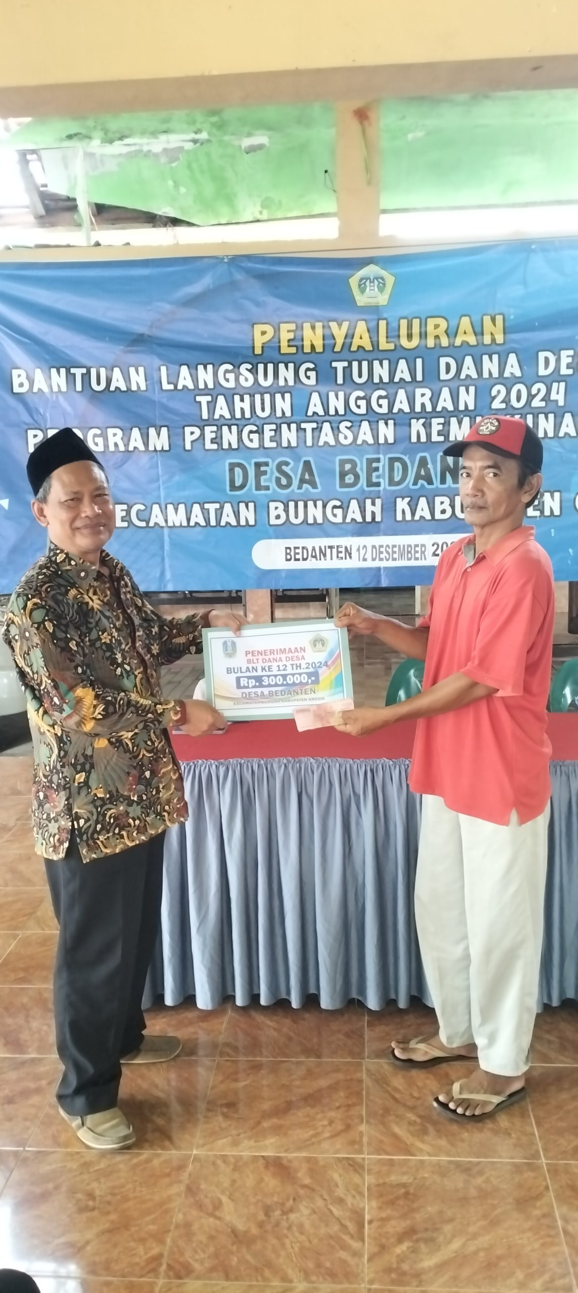 Kegiatan Penyaluran BLT-DD dilaksanakan secara langsung oleh Aparatur Pemerintahan Desa Bedanten, pembagian BLT-DD ini disalurkan sesuai dengan Masing-masing Undangan sebanyak 50 KPM.