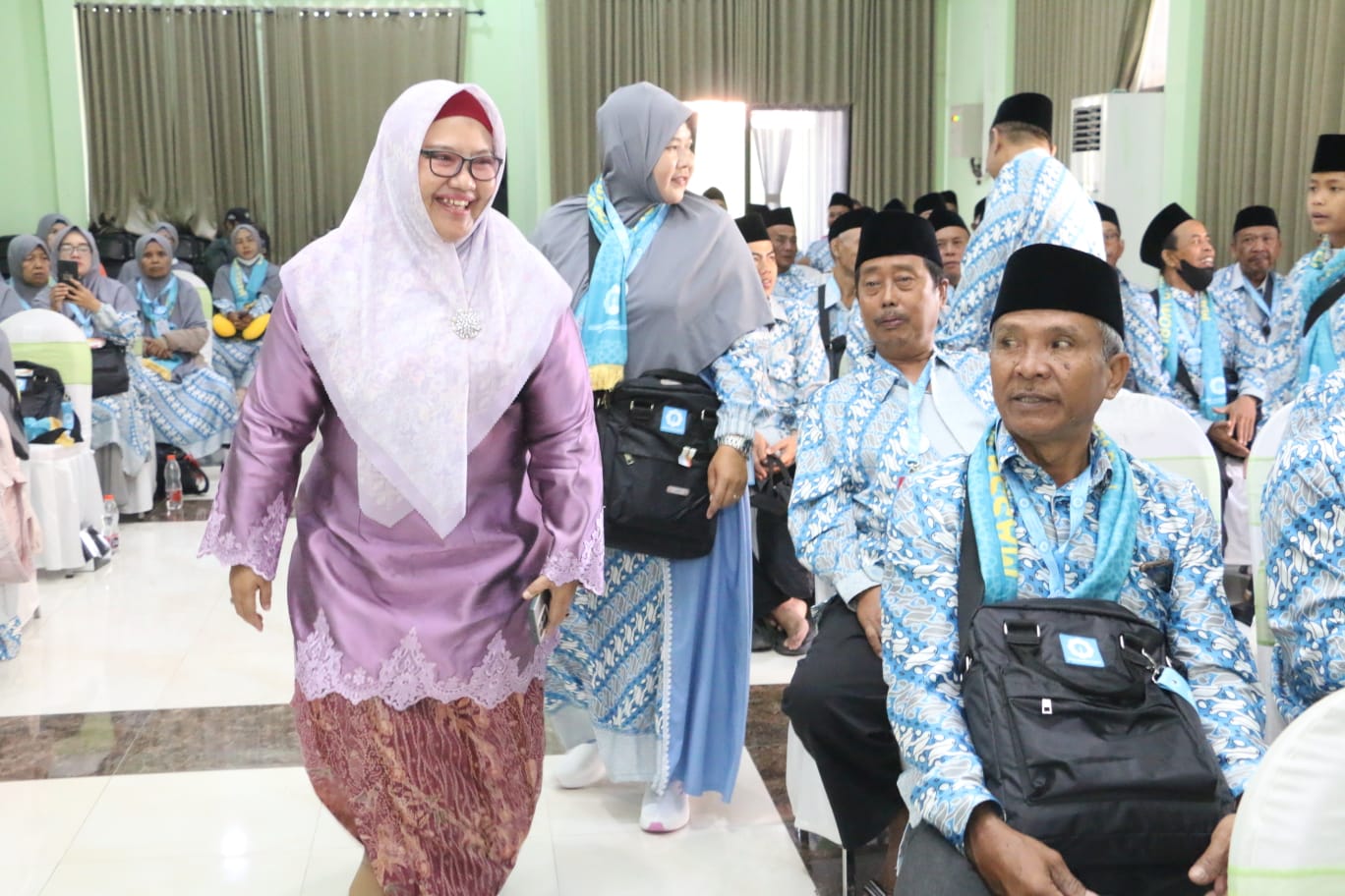“Terlebih kepada jamaah yang usianya sudah sepuh, saya berharap bapak dan ibu untuk saling menjaga agar tidak sampai terpisah dari rombongan,” kata Bu Min.
