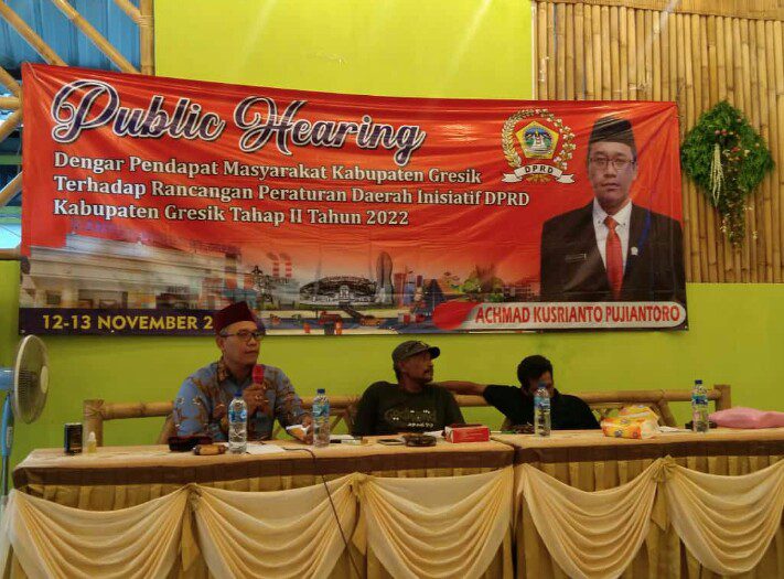 GRESIK https://mediarestorasiindonesia.com Dewan Perwakilan Rakyat Daerah (DPRD) Kabupaten Gresik menggelar Public Hearing tentang Rancangan Peraturan Daerah (Raperda) Inisiatif DPRD Kabupaten Gresik Tahun 2022 di Rest Area Aula Desa Kedungpring, Kecamatan Balongpanggang, Kabupaten Gresik, Minggu (13/11/2022).