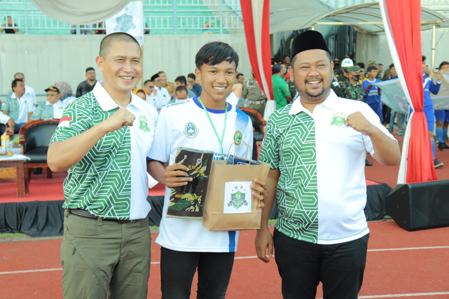 “Turnamen ini merupakan rangkaian pertandingan sepak bola liga santri tingkat nasional yang nanti akan di laksanakan di tingkat MABES TNI AD yang bertajuk Piala KASAD.” Ungkapnya.