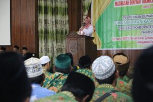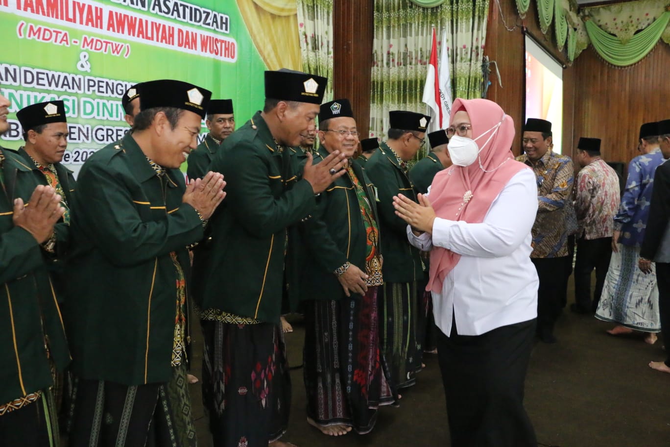 “Kami dari Pemerintah Kabupaten Gresik mengucapkan selamat atas dilantiknya DPC yang baru. Kita menitip pesan agar Diniyah dan Takmiliyah bisa diurus dengan amanah dan menjadi barokah untuk semuanya. Selain itu, kami juga mengucapkan terima kasih kepada seluruh ustadz dan ustadzah yang selama ini sudah memberikan pendidikan agama yang baik kepada seluruh anak-anak kita di Kabupaten Gresik,” ungkap Bu Min.