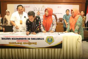 “Strategi kunci penurunan stunting yaitu pemenuhan intervensi, peningkatan konvergensi di desa, pendampingan keluarga dan monev. Kita harus saling berkoordinasi secara terus menerus untuk mewujudkan Kabupaten Gresik zero stunting,”pungkasnya.