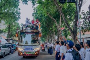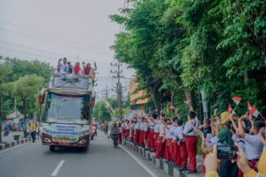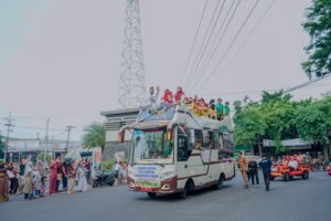 Gresik https://mediarestorasiindonesia.co.id 5 Maret 2024 – Bupati Gresik Fandi Akhmad Yani dan Wakil Bupati Aminatun Habibah bersama jajaran melakukan kirab menyambut Piala Adipura yang diterima dari Kementerian Lingkungan Hidup dan Kehutanan (KLHK), Selasa (04/03). Diiringi sambutan masyarakat yang luar biasa, mereka memulai kirab dari Tugu Selamat Datang Kabupaten Gresik menggunakan Bus Wisata Grissee.