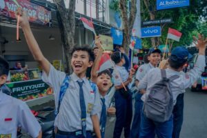 Kegembiraan juga terlihat jelas di wajah Bupati Fandi Akhmad Yani. Orang nomor satu di Kabupaten Gresik tersebut tak henti-hentinya melambaikan tangan dan menyapa warga masyarakat yang menyemut di sepanjang rute pawai. Memasuki Jalan Panglima Sudirman, rombongan konvoi disambut ratusan pelajar yang berdiri di sepanjang pedestrian jalan. Mereka tampak melambai-lambaikan bendera merah putih sambil mengucapkan selamat. Sambutan pelajar dan masyarakat makin padat saat rombongan memasuki Jalan Jaksa Agung Suprapto, mendekati titik finish kirab yakni Gedung WEP.
