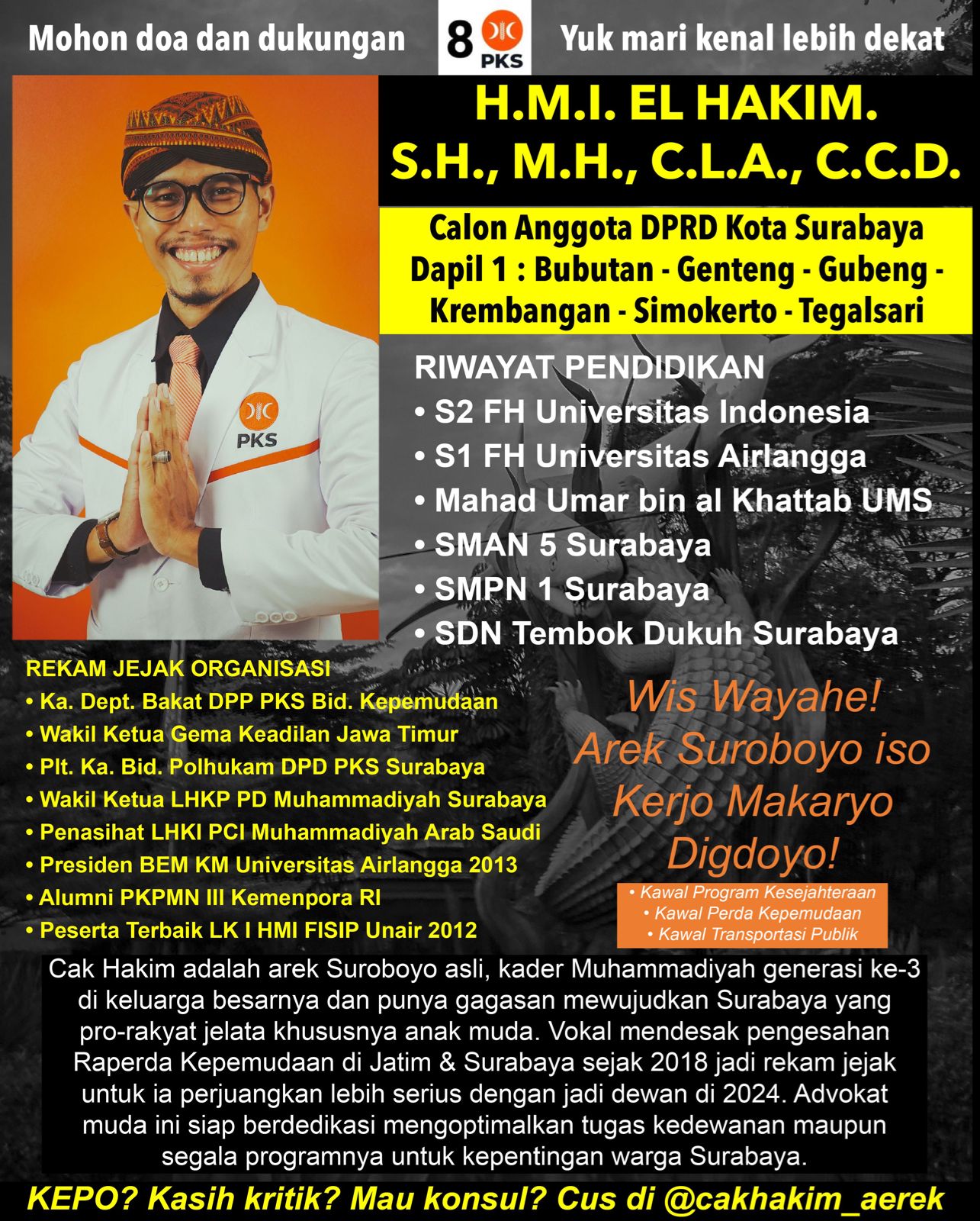 H.M.I. EL HAKIM. S.H., M.H., C.L.A., C.C.D. CALON ANGGOTA DPRD KOTA SURABAYA DAPIL 1: BUBUTAN-GENTENG-GUBENG-KREMBANGAN-TEGALSARIRedaksi13 Juni 2023Berita Utama8 Dilihat Post Views: 8 Jangan LewatkanSerah Terima Jabatan Kapolres Gresik, AKBP Ramadhan Nasution Gantikan AKBP Rovan Richard MahenuSelenggarakan Posyandu Lansia dan Balita, Kades Jatirowo Pastikan Warganya Dapatkan Pelayanan KesehatanMengenal Reysa Meylina: Sosok DJ yang Hipnotis Lantai Dansa dengan Karakter UnikGagas Ide Kreatif Bangkitkan Ekonomi Desa, Kades Golokan Genjot Pembangunan Edu Wisata Endel ParkPemdes Karangrejo Tanam Puluhan Pohon Tabebuya, Wujud Kepedulian Lingkungan dan Kesehatan WargaKontraktor Asal Bawean Tuntaskan Proyek Jalan Gresik Melampaui Target