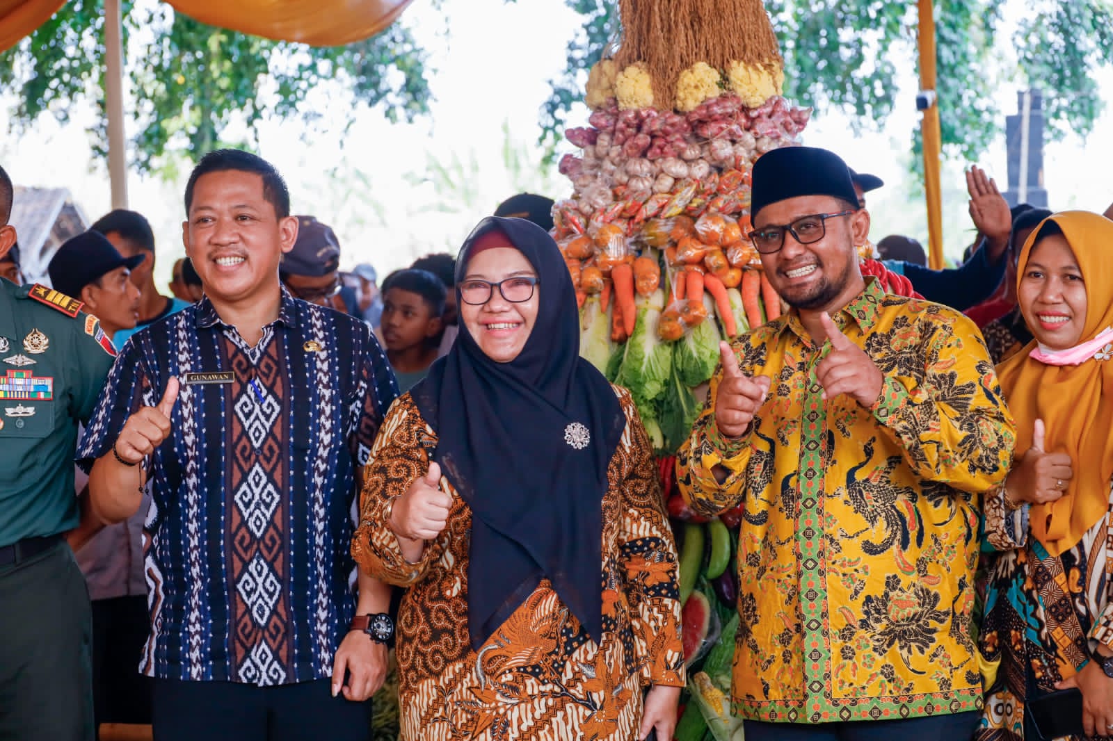 Dalam momen tersebut, wabup juga dibuat takjub dengan antusiasme warga Sawo. Ratusan warga tumpah ruah meramaikan gelaran sedekah bumi siang itu. Tak ketinggalan desa juga menyiapkan 2 tumpeng besar hasil bumi untuk dibagikan pada warga.