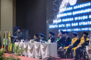 Gresik https://mediarestorasiindonesia.com 30 Oktober 2022 – Wisuda Universitas Qomaruddin (UQ) ke-IV kembali digelar, Minggu (30/10). Sebanyak 464 wisudawan yang terdiri dari 82 wisudawan program magister (S2) dan 382 program sarjana (S1). Ratusan wisudawan tersebut mendapat wejangan dari Bupati Gresik Fandi Akhmad Yani saat itu.