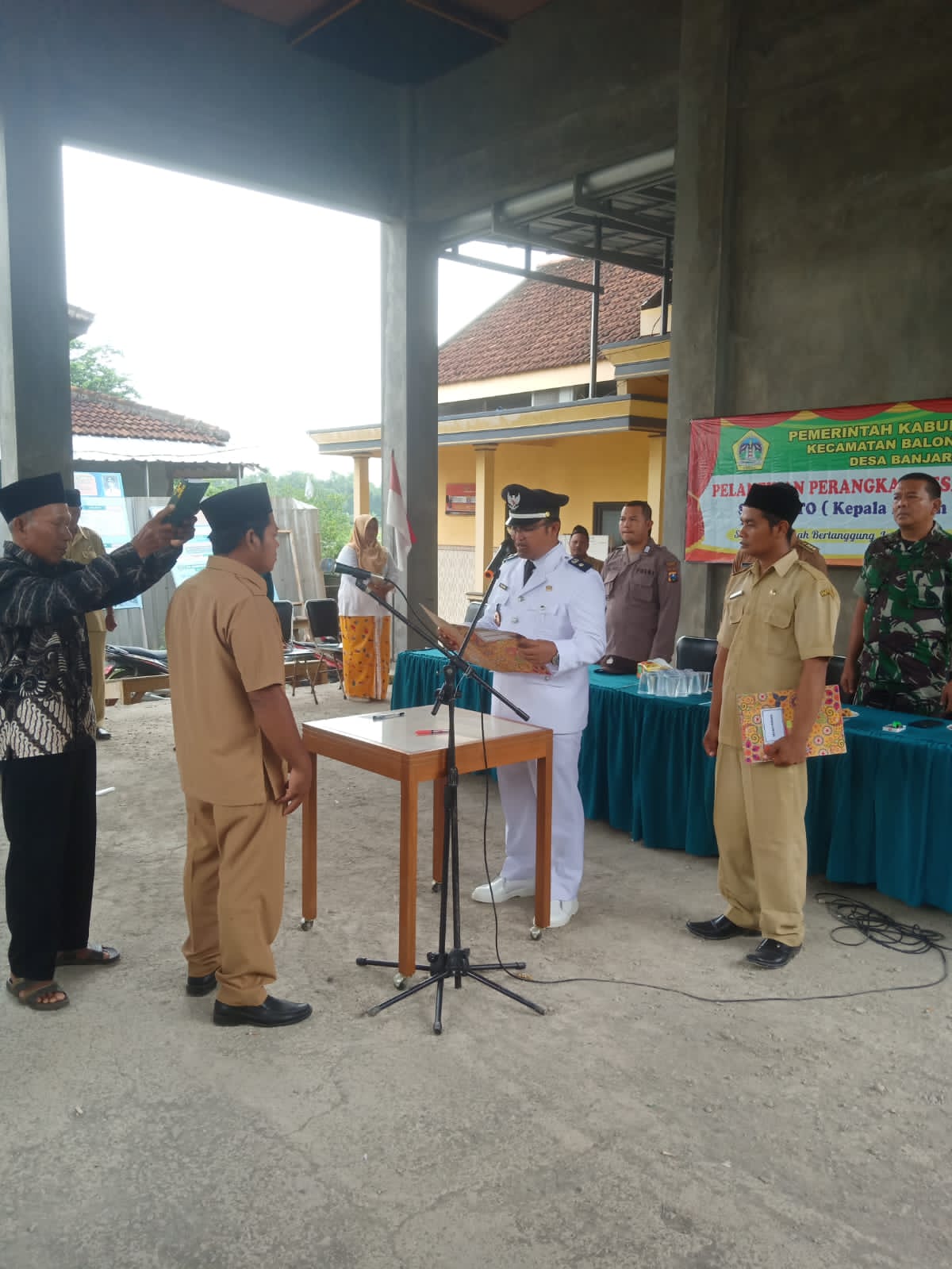 Pelantikan dan pengambilan sumpah jabatan yang dilakukan oleh Kepala Desa Banjaragung Hargianto ini dihadiri oleh Forkopimcam kecamatan Balongpanggang, Camat Balongpanggang M. Amri, Danramil Balongpanggang Kapten INF Erik Tjahya dan Kapolsek Balongpanggang AKP Muhammad Zainudin) beserta jajarannya dan juga disaksikan oleh Perangkat Desa, BPD, LKD, RT, RW, Ketua TP PKK, dan Tokoh Masyarakat.