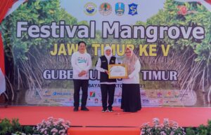 Pada Festival Mangrove Jawa Timur ke-V yang digelar hari ini di Romokalisari Adventure Land Surabaya, Selasa (31/10/2023) Bupati Gresik menerima apresiasi dari Gubernur Jawa Timur Khofifah Indar Parawansa.