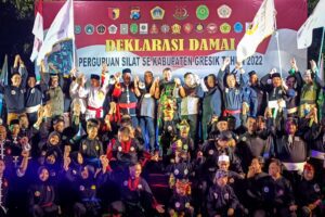 Gresik https://mediarestorasiindonesia.com Ratusan pendekar terdiri dari 18 perguruan silat mengikuti kegiatan Deklarasi damai Perguruan Silat Se-Kabupaten Gresik Tahun 2022, yang terselenggara di lapangan Makodim 0817/Gresik, dengan penanggung jawab Letkol Inf Ahmad Saleh Rahanar, S.Sos. (Dandim 0817/Gresik) yang sekaligus menjabat sebagai Ketua Umum IPSI Gresik. pada Senin(26/12/2022)malam.