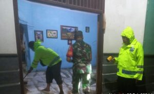 Bersama masyarakat sekitar, tampak anggota Polisi dan personel Koramil Mantingan saling bahu membahu membersihkan lumpur luapan sungai Sawur yang masuk ke rumah warga di Dusun Tempursari Timur Ds. Tambakboyo Kec. Mantingan Kab. Ngawi.