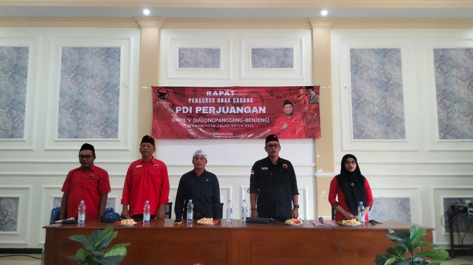 Gresik https://mediarestorasiindonesia.co.id Dewan Pimpinan Cabang (DPC) PDI Perjuangan Kabupaten Gresik memperkuat konsolidasi internal dengan menggelar rapat usulan dan penjaringan calon Ketua Pengurus Anak Cabang (PAC) untuk Daerah Pemilihan (Dapil) V yang meliputi Kecamatan Balongpanggang dan Benjeng, Jumat (13/2/2026).