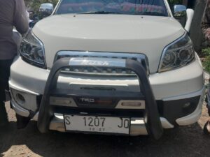 Untuk sementara 1 Unit Sepeda motor Suzuki Satria nopol W 3372 LZ Warna putih merupakan milik korban dan 1 unit Mobil Toyota RUSH warna putih nopol S 1207 JQ beserta STNK dan Kunci kontak yang dikendarai oleh Jaini diamankan dikantor polsek Balongpanggang sebagai barang bukti (BB).(DOD/ALOK)