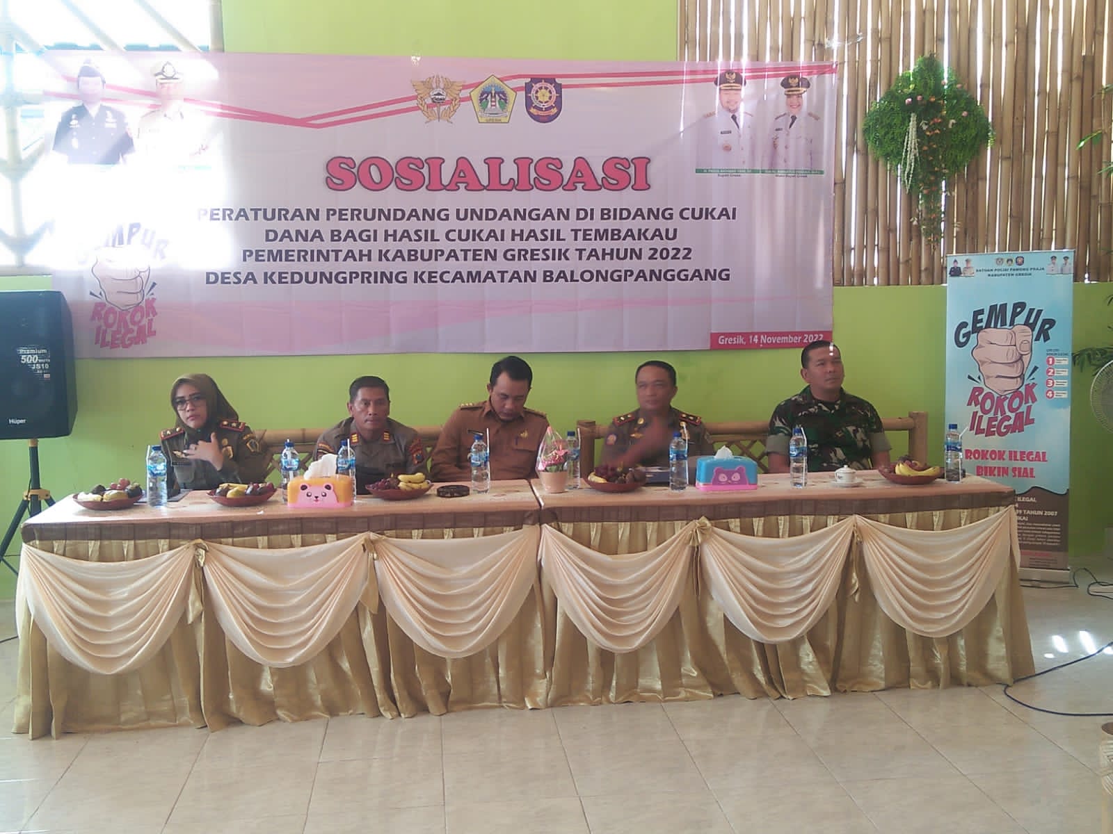 Dalam acara tersebut dihadiri oleh, Kasatpol PP Gresik Suprapto, A.P., M.Si., Camat Balongpanggang Muhammad Amri, S.SiT., Danramil 0817/06 Balongpanggang Kpt. Inf. Eric Cahya Mustika, Kanit Tipikor Polres Gresik Ipda Ketut Raisa, Fungsional Pemeriksa Beacukai kabupaten Gresik Ari Munandar Manshur, Kapolsek Balongpanggang AKP. A. Zainuddin.