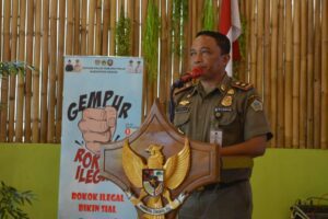 Kemudian acara tersebut dilanjutkan oleh Kasatpol PP Kabupaten Gresik Suprapto, A.P.,M.Si., Dalam Sambutannya, Ia Menyampaikan,” Sosialisasi ini diberikan kepada masyarakat agar masyarakat memahami dan mengetahui tentang ciri-ciri rokok ilegal serta sanksi yang akan diberikan jika ada masyarakat yang menjual dan mengedarkan rokok ilegal,” Ungkapnya.
