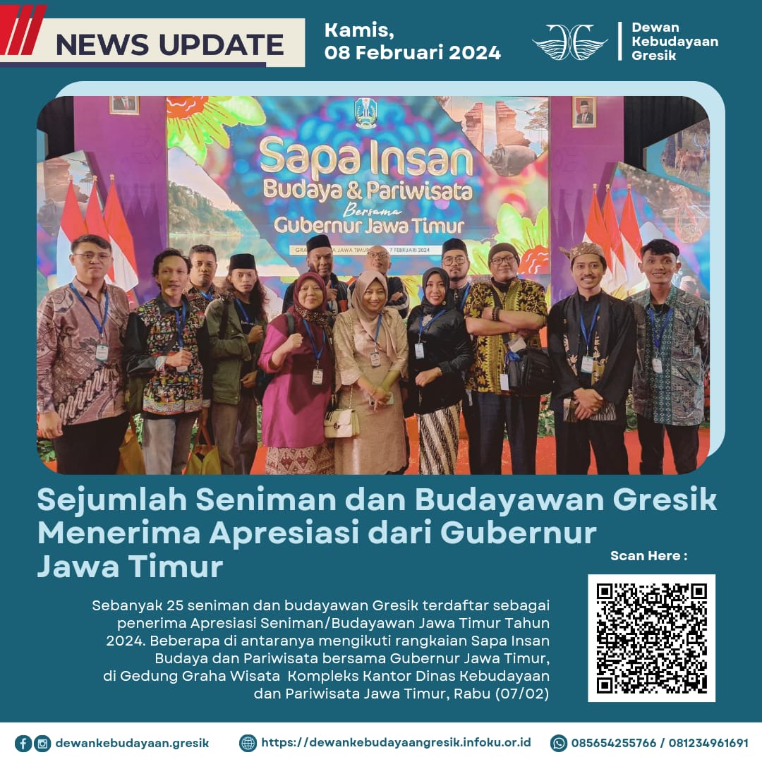 “Semoga dengan mendapat apresiasi ini teman teman seniman/budayawan di Gresik semakin produktif dan bersama majukan kebudayaan,” harapnya.