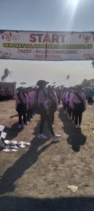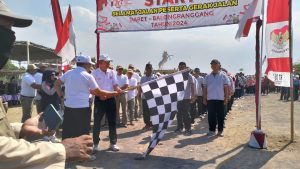 Acara gerak jalan diawali dengan memberangkatkan peserta dari Asosiasi Kepala Desa Se-Kecamatan Balongpanggang dari 25 kepala desa dan dilanjutkan dengan peserta yang lainnya.