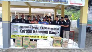 Saat itu, Wakil Ketua 3 Cabang Gresik Bidang Pemberdayaan Anggota & Pengabdian masyarakat Mas Achmad Dawa’i  menyerahkan bantuan paket sembako kepada Ranting PSH Terate Balongpanggang untuk disalurkan oleh Rayon PSHT  Balongpanggang Mas Toni  kepada warga korban banjir kali lamong.