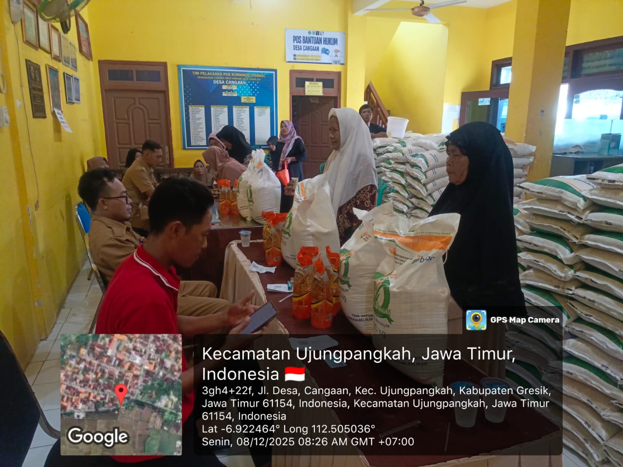Gresik https://mediarestorasiindonesia.co.id Pemerintah Desa Cangaan, Kecamatan Ujungpangkah, Kabupaten Gresik menyalurkan bantuan sosial (bansos) dari Badan Pangan Nasional (Bapanas) berupa beras dan minyak goreng kepada 353 Keluarga Penerima Manfaat (KPM). Program ini merupakan bagian dari upaya pemerintah memperkuat jaring pengaman sosial serta menjaga stabilitas ketahanan pangan masyarakat desa.