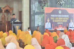 Gresik https://mediarestorasiindonesia.com 08 Desember 2022 – Uang kehormatan untuk 1.000 Huffadz yang tergabung dalam RHQ (Robithoh Hamilatul Qur’an) kembali diberikan. Penyerahan tersebut diberikan secara simbolis oleh Bupati Gresik Fandi Akhmad Yani di Masjid Inabah, Kantor Bupati Gresik, Kamis (8/12).
