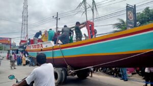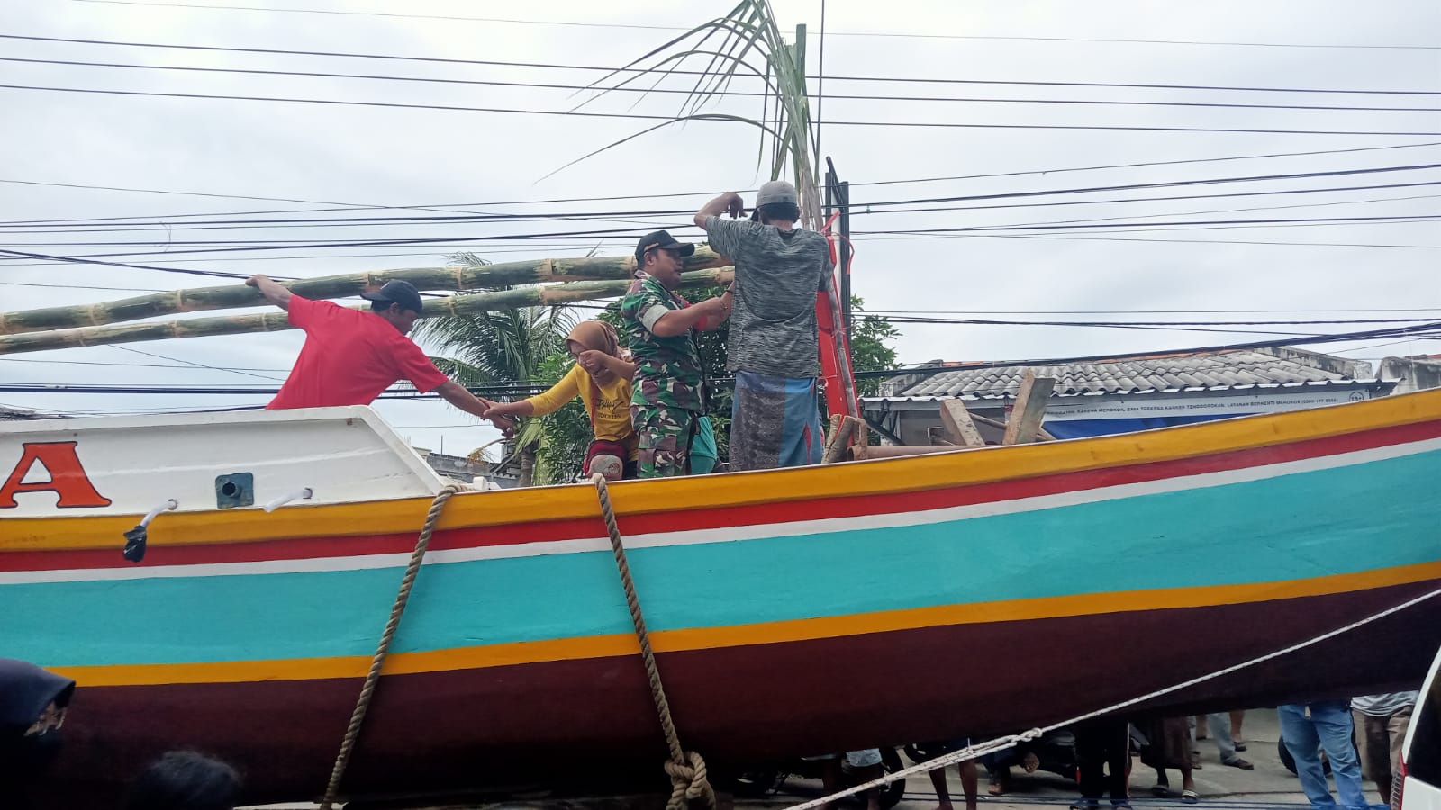 PERAN AKTIF BABINSA PANGKAH KULON, BERSAMA NELAYAN TURUNKAN KAPAL TRADISIONAL SIAP MELAUT