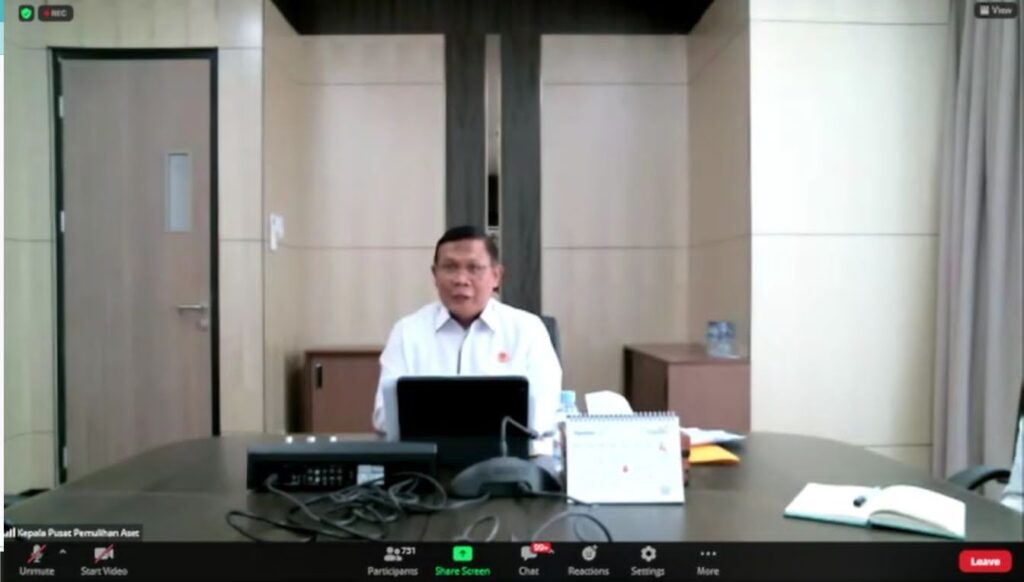 Sementara itu dalam kesempatan yang sama, Kepala Pusat Pemulihan Aset Syaifudin Tagamal memaparkan materinya yang berjudul “Pemulihan Keuangan Negara Sesuai Tugas dan Kewenangan Pusat Pemulihan Aset dan Jaksa Pengacara Negara dalam Implementasi Peraturan Kejaksaan RI Nomor 7 Tahun 2020 tentang Perubahan Kedua Atas Peraturan Jaksa Agung Nomor: PER-027/A/JA/10/2014”.