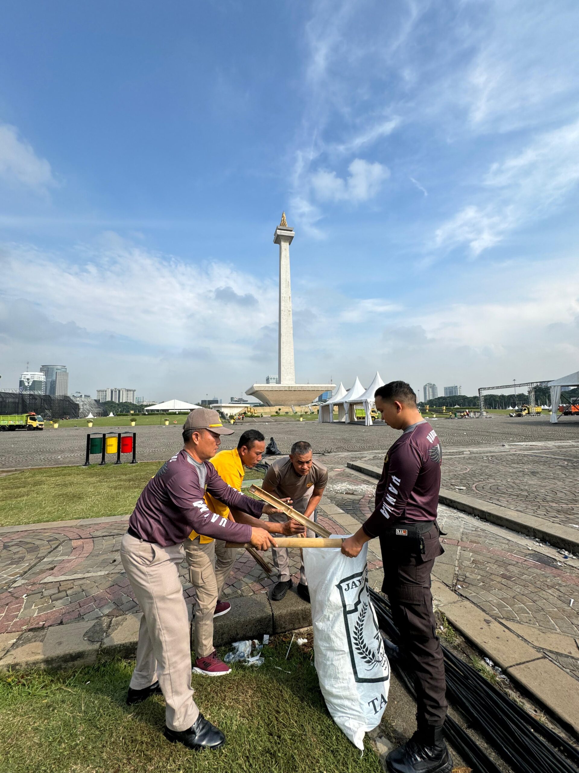 Bersih-bersih pun masih dilakukan hingga pagi ini untuk memastikan Lapangan Silang Monas Bersih dan steril seperti semula. Dengan kondisi bersih saat ini, masyarakat dapat menikmati rekreasi ke Monas tetap dengan nyaman.