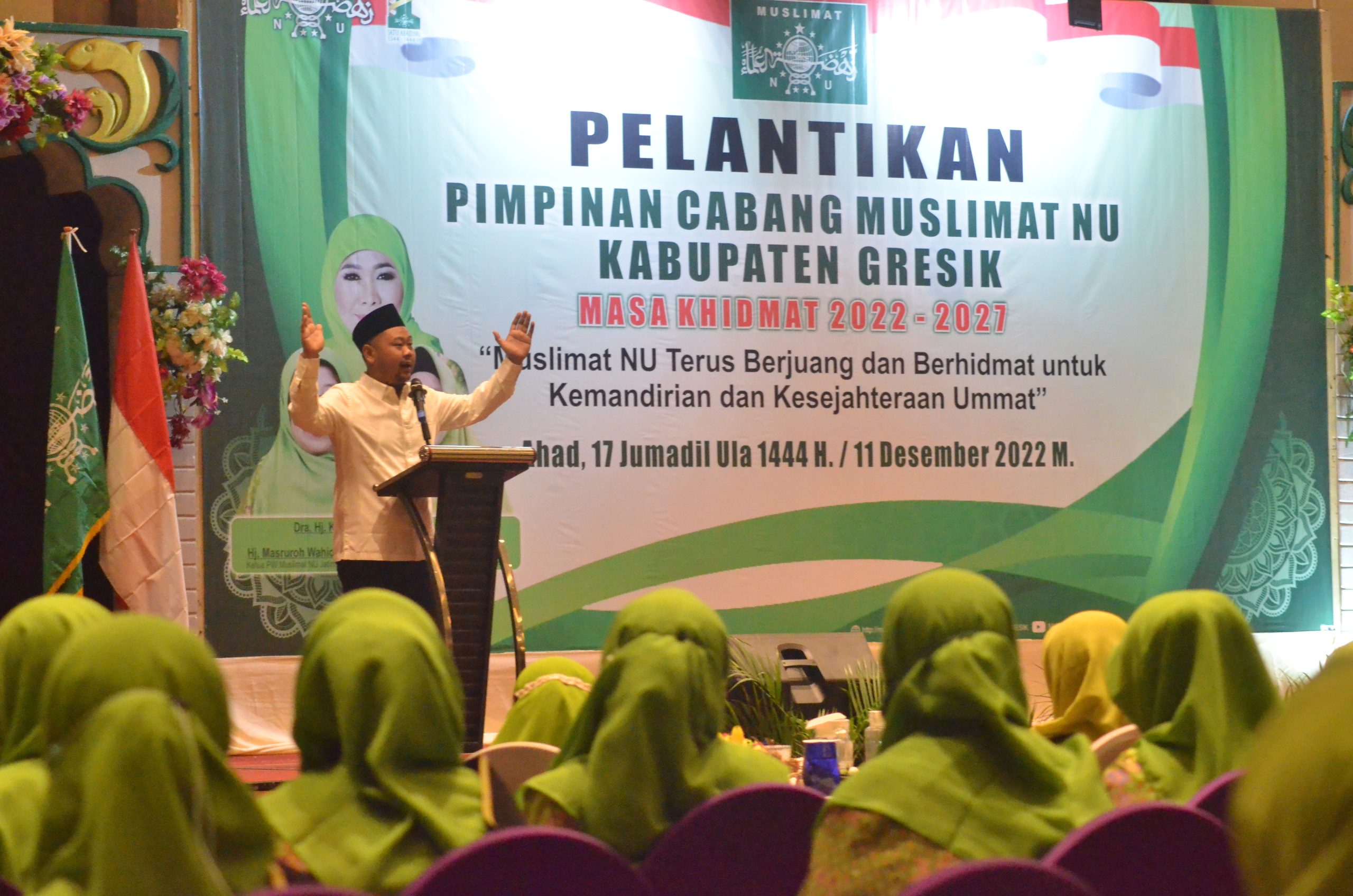Gresik https://mediarestorasiindonesia.com 11 Desember 2022 – Pimpinan Cabang (PC) Muslimat Nahdlatul Ulama’ (NU) Gresik masa bakti 2022-2027 resmi dilantik, Minggu (11/12) di aula Giri Loka Aston Inn. Mereka dilantik oleh Ketua III Pengurus Wilayah Muslimat NU Jawa Timur Lilik Nur Kholidah Badrus.