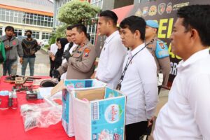 Barang bukti yang diamankan, 23 Buah Ampul Darah Beku, 1 unit Handphone berbagai merk, 6 Keris, 2 bal uang mainan pecahan Rp 100 ribu, 2 kardus air mineral berisi uang mainan, 1 Blangkon, 7 dupa, 1 kotak kayu berisi jengglot/bk, 1 kotak berisi patung bayi, 2 kotak berwarna hitam berisi miniatur patung dewi kwan in, 18 ampul.Pungkasnya.(LIK/SAM/DAN).