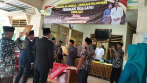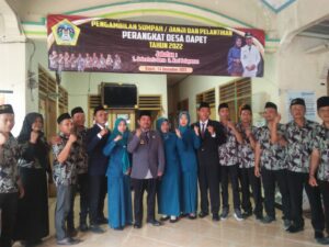 Acara diawali dengan pengambilan Sumpah Jabatan dan Pelantikan dua perangkat Desa Dapet digelar di halaman kantor balai Desa Dapet pada hari Rabu (14/12/2022).