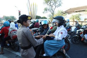 Yang menarik, pagi itu para Srikandi Bhayangkara juga membawa kejutan manis. Cokelat-cokelat dibagikan kepada pengendara yang tertib berlalu lintas, terutama anak-anak. Gestur sederhana ini ternyata mampu membuat pagi hari masyarakat Gresik menjadi lebih ceria dan hangat.