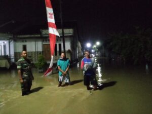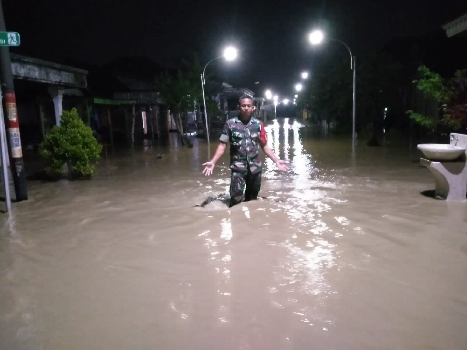 Terpantau saat ini Anggota dari kesatuan Koramil Balongpanggang juga turut serta memantau kondisi banjir yang melanda diwilayah Wotansari dan sekitarnya, diperkirakan ketinggian air mencapai 60 cm, Warga masyarakat saat ini siaga banjir, antisipasi terhadap hal-hal yang tidak diinginkan jika banjir besar datang melanda.