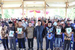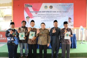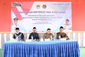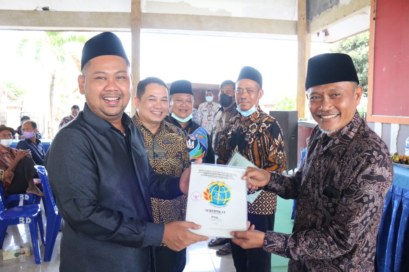 Penyerahan ini, merupakan rangkaian acara dari penyerahan Sertipikat Hak Atas Tanah (SHAT), dalam rangka program strategis nasional Pendaftaran Tanah Sistematis Lengkap (PTSL) tahun 2022. Kegiatan ini diadakan di balai Desa Dalegan, Kecamatan Panceng, Kamis (8/12/2022) sore.
