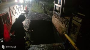Dan belakangan diketahui amblesnya bahu jalan sebelah kiri jembatan di desa dapet tersebut mencapai volume sekitar 3M X 2 M kedalaman hampir mencapai 5/6 M.