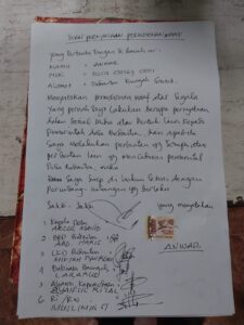 Dan endingnya, hari ini, belum sampai 1 x 24 jam, Anwar, pelaku pelecehan Kedaulatan Desa Bedanten akhirnya meminta maaf. Warga Jalan Bandaran Sari Rejo RT 05 RW 02 Desa Bedanten, Kecamatan Bungah, Kabupaten Gresik, Jawa Timur ini, Minggu (5/11/2023) sekitar pukul 15.00 WIB dengan kesadaran sendiri tanpa paksaan menuliskan Surat Pernyataan Permohonan Maaf. (DOD/LIK/LIS)