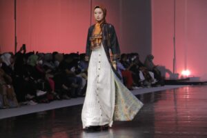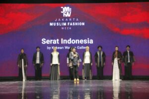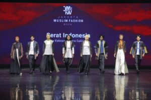 JAKARTA https://mediarestorasiindonesia.com Di tangan Achmad Nur Hasyim Hamada, kain tenun khas Gresik menjadi busana muslim dengan style modern. Apalagi kain tenun Gresik dengan rancangan Nur Hasyim Hamada diperagakan dalam Jakarta Muslim Fashion Week 2023, Sabtu (22/10).